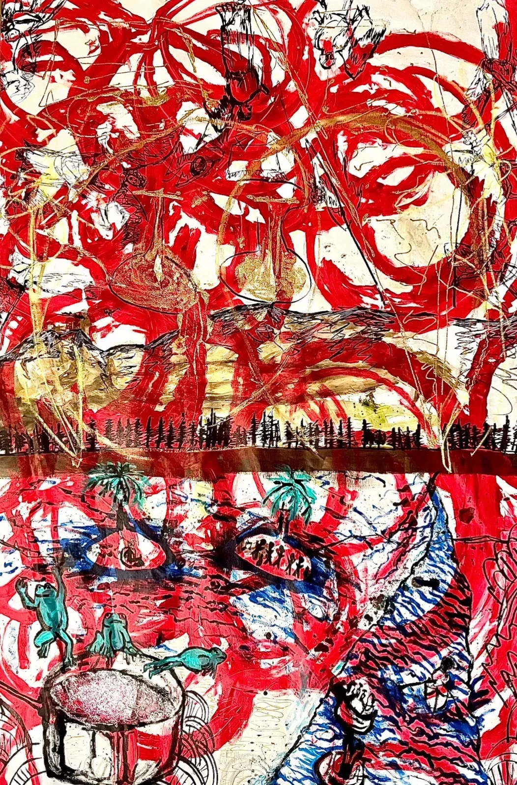 Step into her evolving style of art works blending pop art with sacred iconography, creating visual diary entries that are as intimate as they are electrifying.